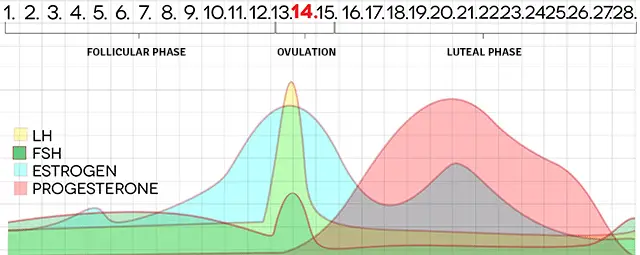The urinary and serum LH peak preceded ovulation in many women, but in about 25% of cycles the peak was detected after ovulation. This finding was more pronounced for serum measurements than for urinary measurements. Urinary and serum estrogen levels show at least two peaks, one each in the follicular phase and the luteal phase. Estrogen peaks were higher in the follicular phase compared to the luteal phase. The beginning of the hormonal surges in serum and urinary LH and serum and urinary estrogen were always preovulatory. The rise in estrogen occurred about 5 days before ovulation, followed by the LH surge 3-4 days later. The LH surge started 1 day before and always before ovulation as determined by ultrasound. There was a rise in progesterone around 3 days after objective ovulation.